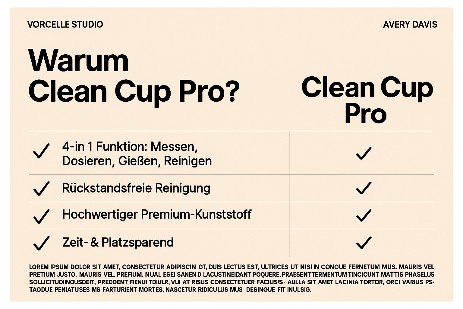 • 1 × CleanCup Pro – 4-in-1 Premium Messbecher